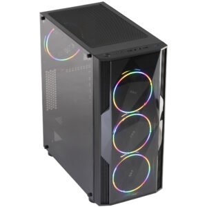 MS FIGHTER V315 gaming case, Midi tower, ATX, mATX; 3.5″ internal slot 2; 2.5″ internal slot 3; USB 2.0×2, USB3.0x1, Color BLACK; 3 front RGB fans, 1 rear LED fan.